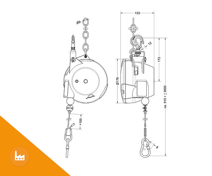 Load range: 3.0 - 21.0 kg | Cable travel: 2000 mm