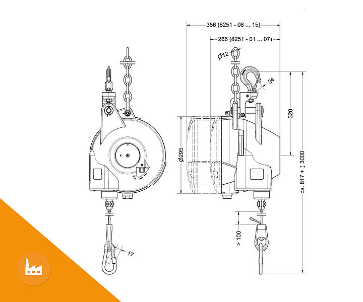 Load range: 15.0 - 200.0 kg | Cable travel: 3000 mm