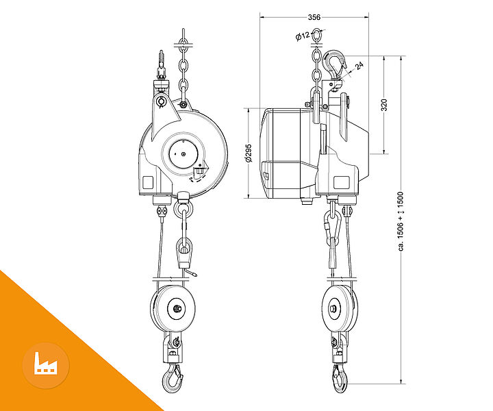 - Freely rotating and swivelling safety hook for suspension, adjustable