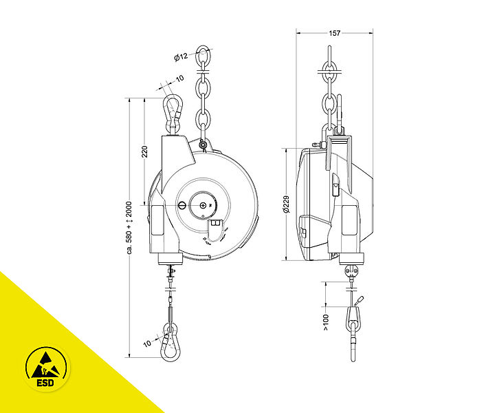 Load range: 15 – 55 kg | Cable travel: 2000 mm