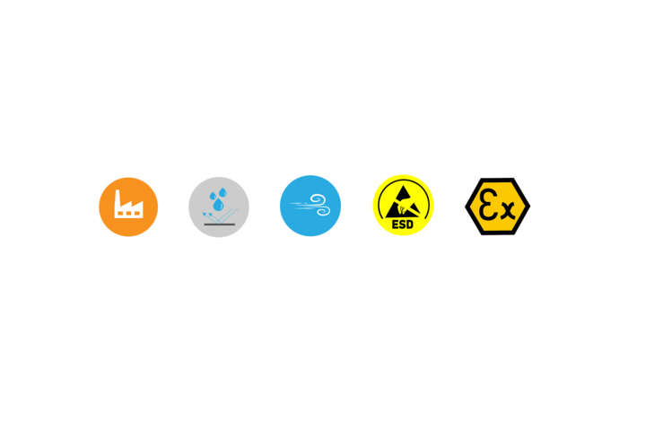Environmental conditions such as ESD protection requirements, exposure to moisture, or hygienically sensitive application areas are key factors when selecting the appropriate design. They ensure long-term system performance and maximum operational safety over the entire service life.