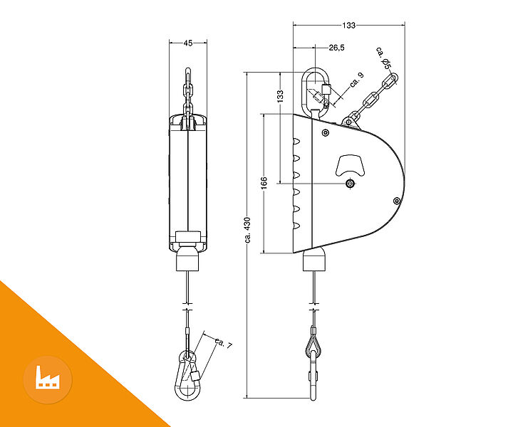 Range di carico: 0,5 - 5,5 kg | Estensione del cavo: 2500 / 1400 mm